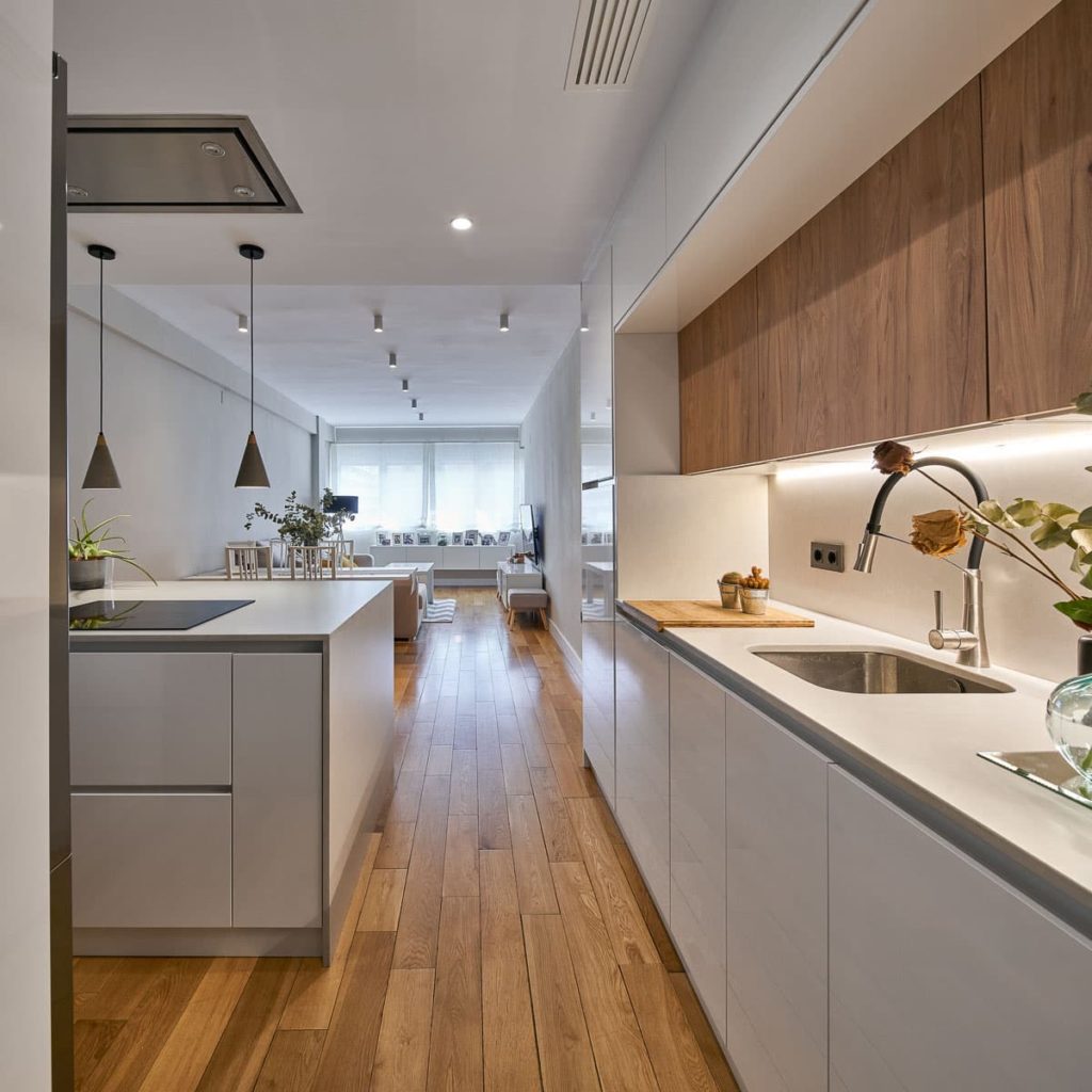 Aquí tienes nuestra opinión respecto a las preguntas más frecuentes sobre diseño de cocinas. Llevamos tiempo diseñando cocinas (ver proyectos terminados) y confiamos en que nuestro punto de vista te pueda aclarar algo. Si tienes preguntas adicionales, déjalas en los comentarios. A/ DISTRIBUCIÓN DE ESPACIOS 1. ¿Cocina con isla o sin isla? Desde nuestro punto de vista, si puedes poner una isla o península, nuestra recomendación es que la pongas. ¿Por qué? Porque una isla tiene muchas ventajas: Mayor vida social Mayor espacio de almacenaje Mayor espacio para trabajar en la encimera Ofrecen asientos adicionales Son muy bonitas y elegantes Explicamos todo esto en detalle en este artículo exclusivo sobre islas. Por todo ello, si puedes poner una isla, ponla. Pero solo si puedes. Porque en algunos casos no hay espacio suficiente para poner una isla. Es entonces cuando, al intentar colocar una isla, todos los espacios y pasillos de…